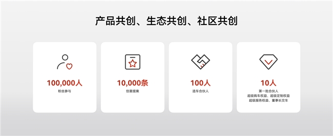 车展上,EXEED星途营销中心总经理黄招根与用户代表郭培杰共同宣布:“为爱一起吧”用户共创计划正式启动,星纪元E08将全面实现产品、社区、生态的全价值链共创。该计划将在全球范围内召集100,000位粉丝参与,收集10,000条创意提案,邀请100个造车合伙人参与,围绕着星纪元E08的量产落地,进行线上线下的灵感碰撞。通过这些世界上真正热爱MPV、深度理解MPV核心价值、最懂MPV的“共创天团”,打造真正的Dream Car。同时,第一批合伙人10人将享有超级购车、超级定制、超级服务以及董事长亲自交车权益。